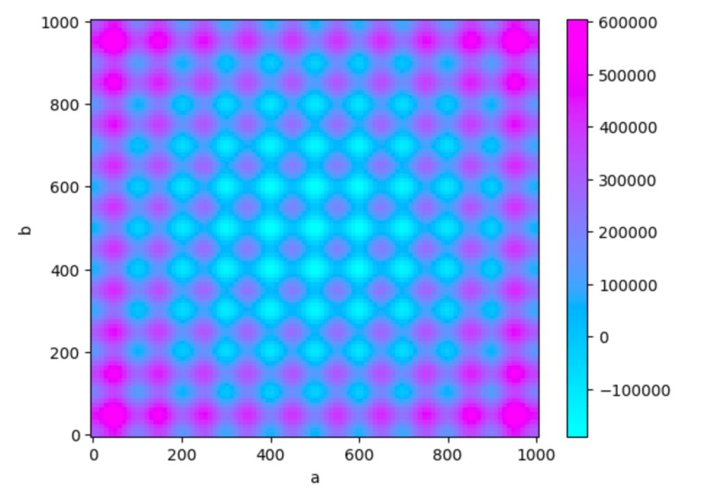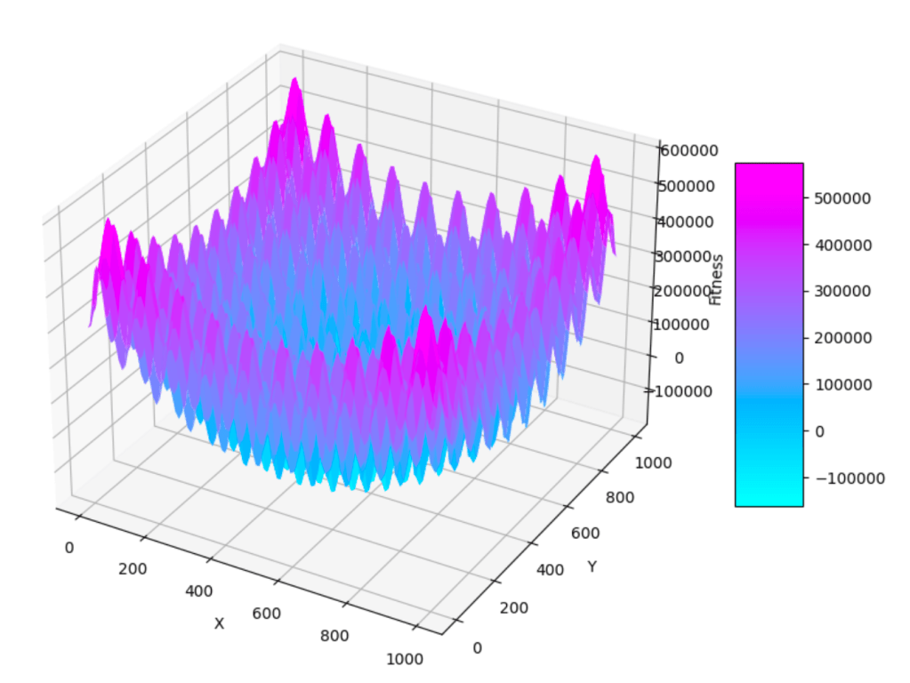 Z = ((X-500)**2 - 100000 * np.cos(2 * np.pi * X)) + ((Y-500)**2 - 100000 * np.cos(2 * np.pi * Y)) + 20