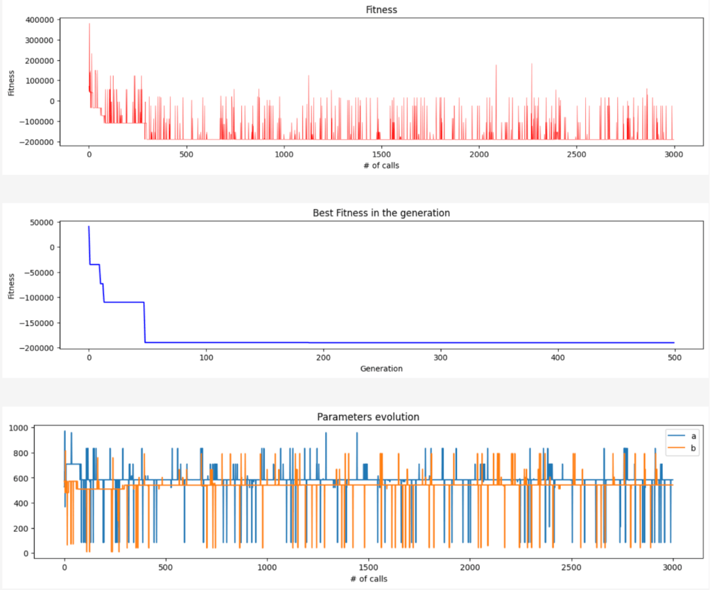 Additionally, the code creates a CSV file with the parameters and the fitness every time the fitness function has been computed, just to observe how the parameters evolve over time.